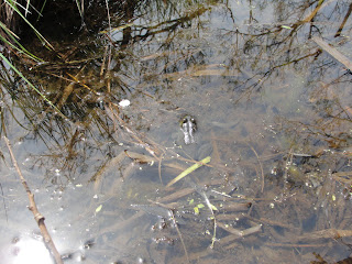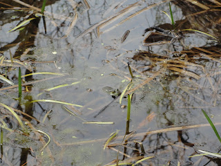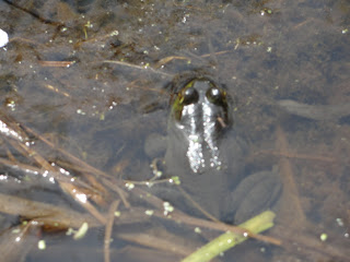 Our local frogs spend most of the winter buried in the mud. In early spring they reappear in most of our freshwater areas but they especially like cranberry bogs, whether they be wild ones or cultivated ones. The ditches seem to offer lots of good hiding spaces, plenty of sun and a whole banquet of tasty flying insects that come in to nectar on the cranberry blossoms.