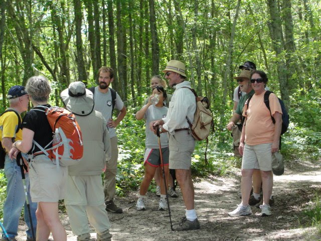 After waiting out a pretty impressive thunderstorm in our cars we began the 9 day walk across Cape Cod in West Falmouth yesterday morning. There were about 35 of us.We walked on the Falmouth bike path and then up Rt. 15 a bit before turning into a trail on the Crane Reservation. An old cattle farm, this piece of land is huge and has been maintained as open meadow, allowing for all sorts of field flowers, birds, butterflies and other animals to flourish there.