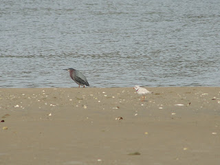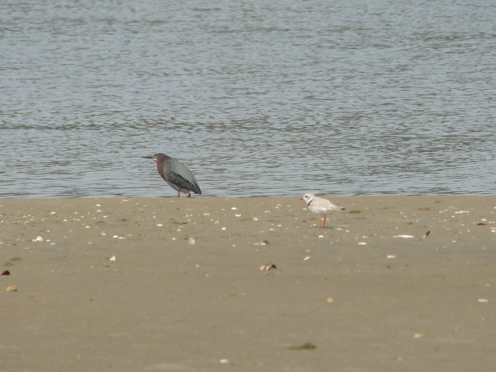 Great birds to see on the beach–check out the piping plover hanging out to the left of the little green heron…