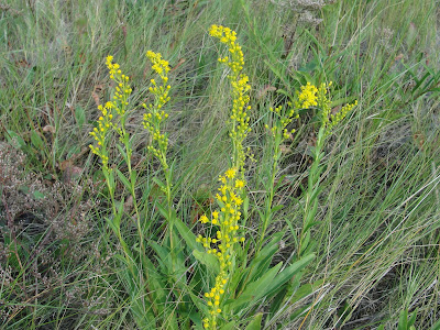 and, to make matters more complicated, there are actually several different species of goldenrod, including seaside goldenrod in the photo above. Whether you find it in a field, along a marsh side or at the beach, it may look the same at first, but check the leaves and the blossom pattern to see the differences….