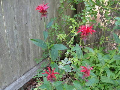 My bee balm is suffering in the heat but the bees and hummingbirds still love it….