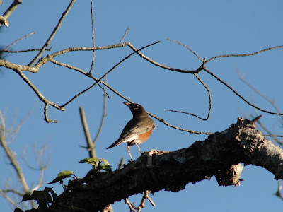 Some years there are so many winter robins that huge roosts of many thousands form, especially in the Sandwich and Barnstable area. Other years, like this year, there are lots and lots of robins around but the roosts are not quite as large. Some people speculate that this is because there is plenty of food available over a broad area so the birds spread out more.